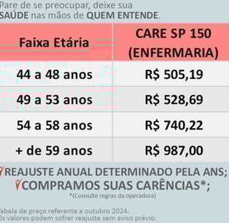 *O Plano CARE 50 TEM COBERTURA APENAS NA CAPITAL PAULISTA