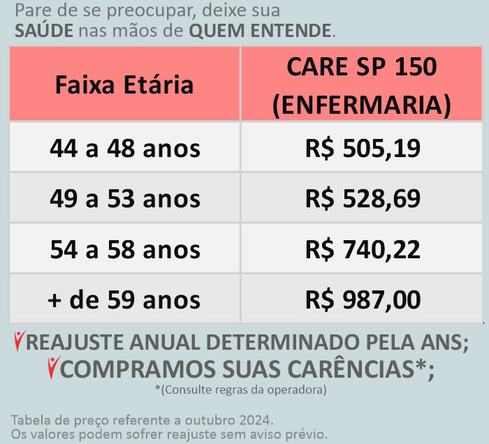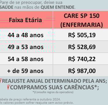 *O Plano CARE 50 TEM COBERTURA APENAS NA CAPITAL PAULISTA